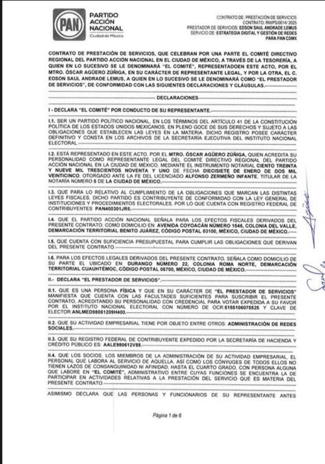 Edson Saúl Andrade Lemus, figura central de la llamada “Generación Z” y promotor de una reciente marcha, quedó en el foco luego de que el Partido Morena, a través de Luisa María Alcalde, difundiera un contrato que lo vincula con un pago de 2 millones 106 mil 810 pesos por parte del Partido Acción Nacional de la Ciudad de México (PAN-CDMX) por supuestos servicios de estrategia digital y gestión de redes.