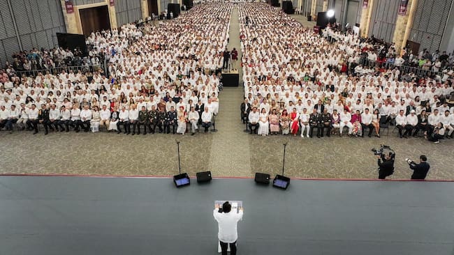 En materia de salud, destacó que se está fortaleciendo la red de clínicas y centros de salud en los municipios, con más de 107 millones de pesos destinados a infraestructura, equipamiento y condiciones dignas de atención; asimismo, se invirtieron 180 millones de pesos en equipo de última generación y 450 millones en insumos para el Hospital de Alta Especialidad; además de que se está avanzando en la construcción del nuevo Hospital O’Horán, luego de más de 120 años del edificio actual. Asimismo, adelantó que, en unos días, abrirá sus puertas el nuevo Hospital de la Marina, en Progreso.