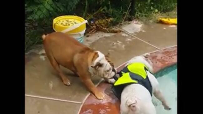 Bulldog intenta rescatar a otro Bulldog... creía que se estaba ahogando