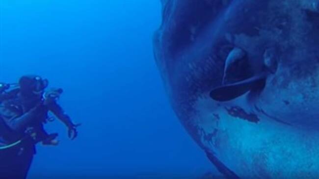 Un grupo de buzos frente a la Isla de Santa María, Portugal, se llevó uno de los mejores recuerdos de sus vidas cuando un enorme ser marino se les acercó: un pez luna