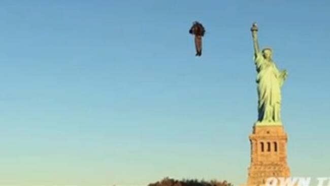 El australiano David Mayman ha causado sensación con este nuevo video en el que vuela sobre la Estatua de la Libertad en Nueva York utilizando una mochila propulsora