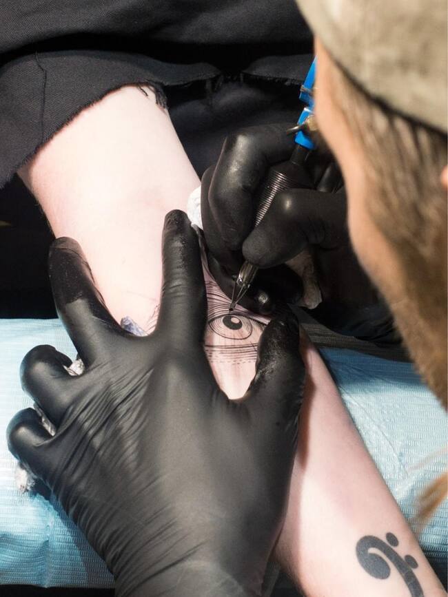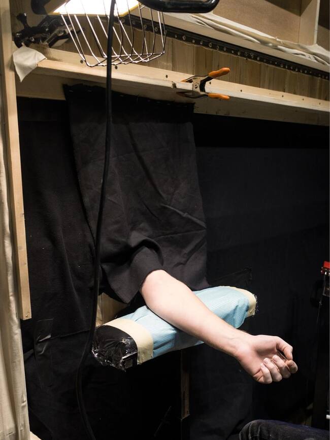 Estas personas metieron el brazo por un agujero y se dejaron tatuar a ciegas