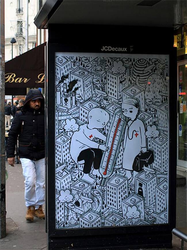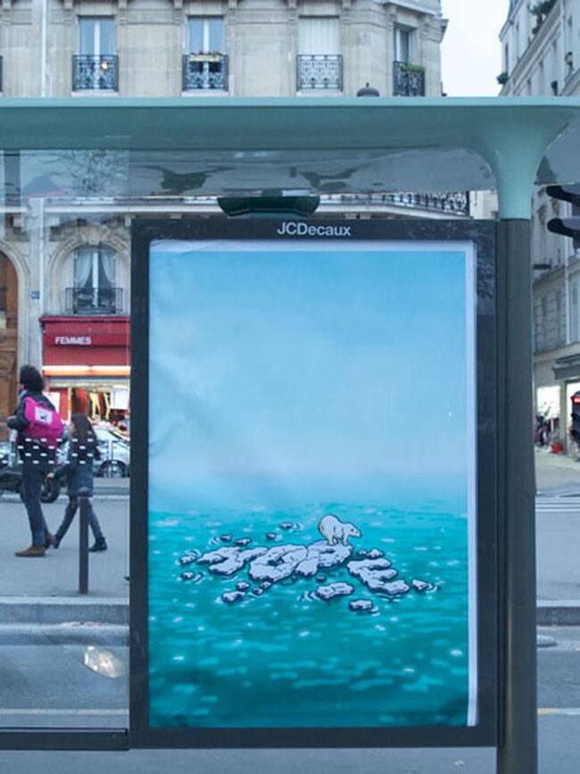 En estos momentos se está llevando a cabo el COP21, un evento que reúne a 150 líderes para hablar sobre el Cambio Climático. Como parte de una protesta, artistas llenaron con 600 anuncios las calles de París en protesta por las corporaciones culpables por la contaminación mundial