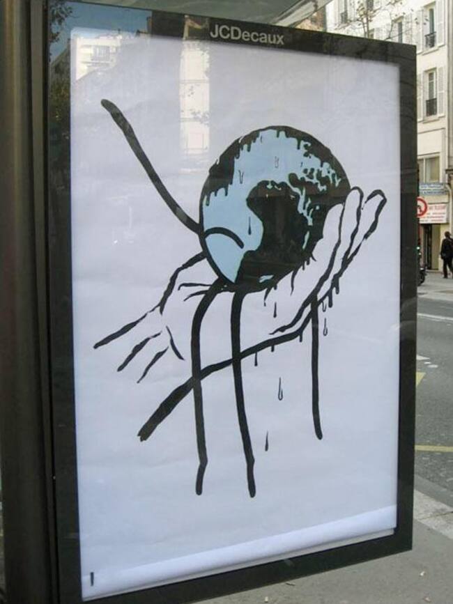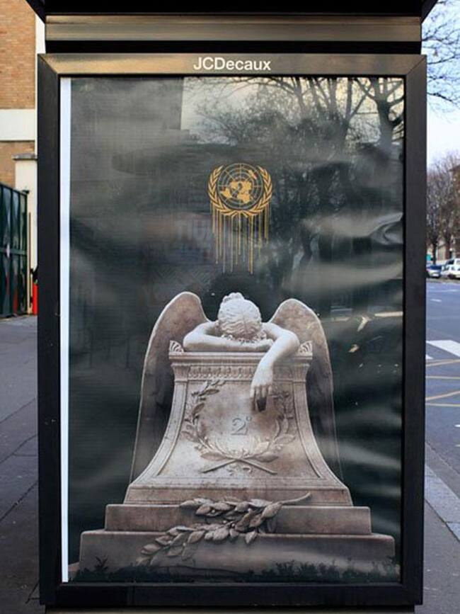 Artistas llenan París con anuncios falsos en protesta por el patrocinio al #COP21